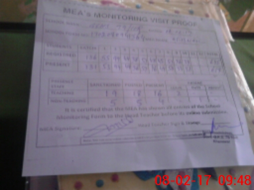 | Attendance Register | Head Teacher | MEA with School | Visit Proof |