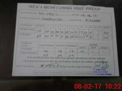 | Certified that this School was Inspected by the Undersigned MEA/DMO Today and the Information Stated Above is as Per Record. | |||||