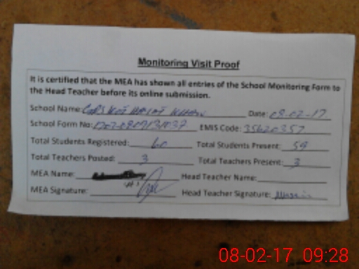 | Attendance Register | Head Teacher | MEA with School | Visit Proof |