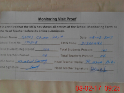 | EMIS Code: 31320492 | Name of School: GMPS CHAK NO.26/A | |||
