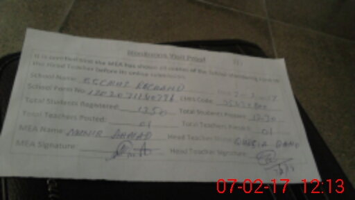 | Certified that this School was Inspected by the Undersigned MEA/DMO Today and the Information Stated Above is as Per Record. | |||||