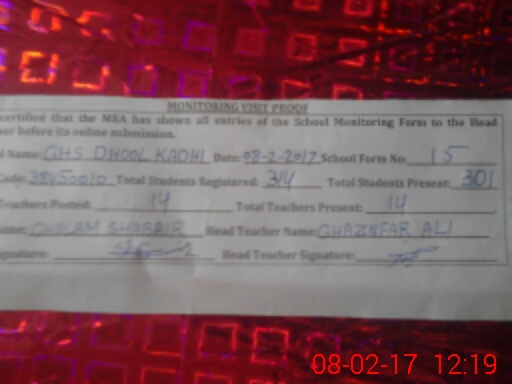 | EMIS Code: 38450010 | Name of School: GHS DHOOL KADHI | |||