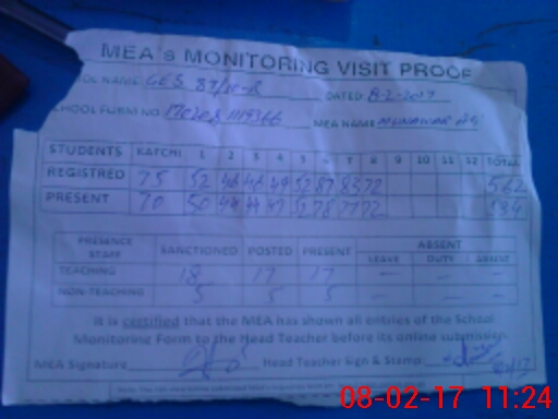 | Attendance Register | Head Teacher | MEA with School | Visit Proof |