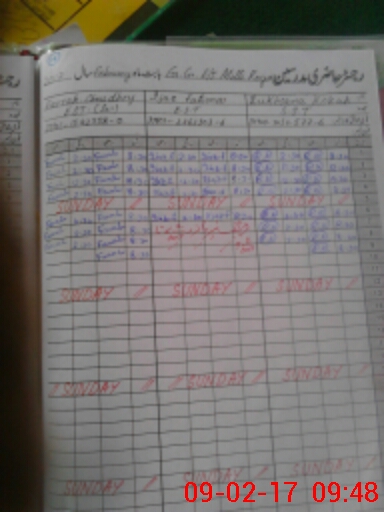 | CNIC | Full Name | Designation | R/C | Absence During Last Calender Month |
