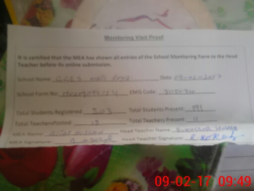 | Certified that this School was Inspected by the Undersigned MEA/DMO Today and the Information Stated Above is as Per Record. | |||||