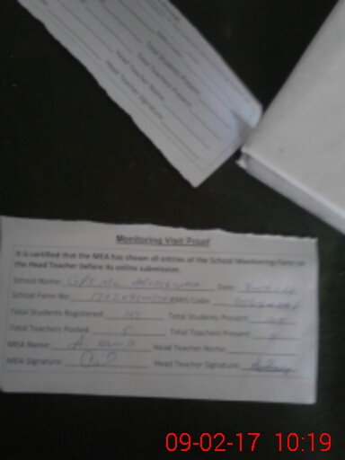 | Attendance Register | Head Teacher | MEA with School | Visit Proof |