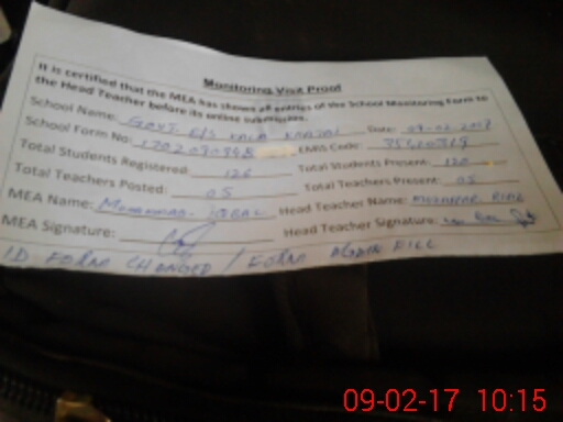 | Attendance Register | Head Teacher | MEA with School | Visit Proof |