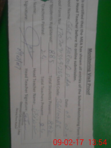 | Certified that this School was Inspected by the Undersigned MEA/DMO Today and the Information Stated Above is as Per Record. | |||||