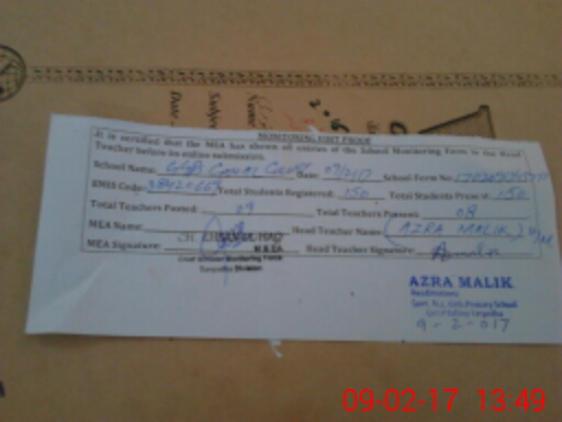 | Attendance Register | Head Teacher | MEA with School | Visit Proof |