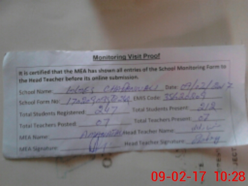 | Attendance Register | Head Teacher | MEA with School | Visit Proof |