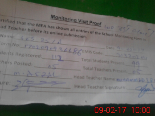 | Certified that this School was Inspected by the Undersigned MEA/DMO Today and the Information Stated Above is as Per Record. | |||||
