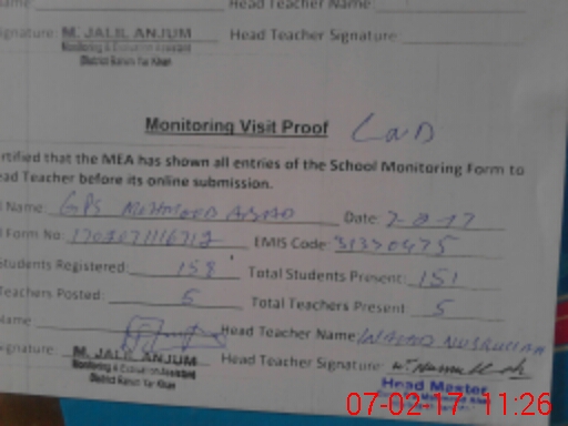 | Certified that this School was Inspected by the Undersigned MEA/DMO Today and the Information Stated Above is as Per Record. | |||||