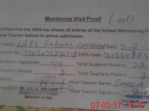 | EMIS Code: 31330824 | Name of School: GGPS SARWAR CHUHAN | |||