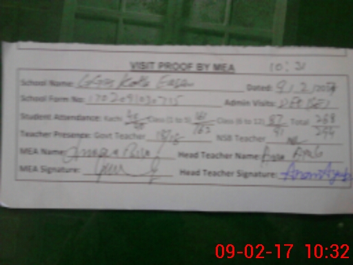 | Attendance Register | Head Teacher | MEA with School | Visit Proof |