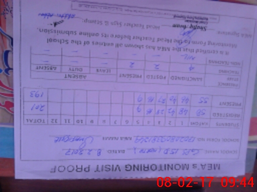 | Attendance Register | Head Teacher | MEA with School | Visit Proof |