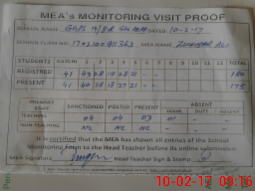 | Certified that this School was Inspected by the Undersigned MEA/DMO Today and the Information Stated Above is as Per Record. | |||||