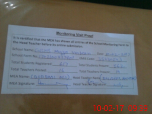 | EMIS Code: 35430243 | Name of School: GGHS MIRZA VIRKAN | |||