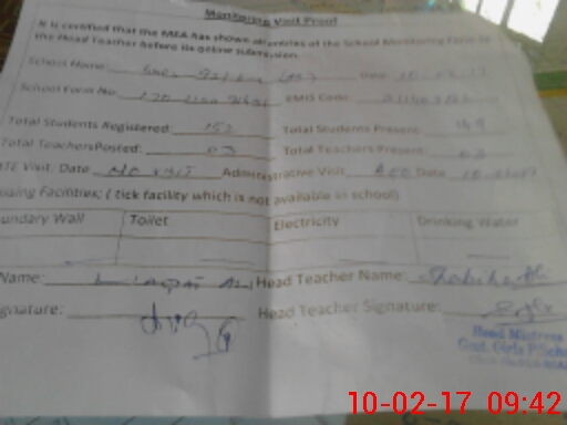 | Certified that this School was Inspected by the Undersigned MEA/DMO Today and the Information Stated Above is as Per Record. | |||||