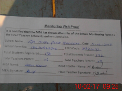 | EMIS Code: 31320092 | Name of School: GPS JINDU PEER QADEEM | |||