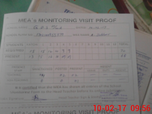 | Attendance Register | Head Teacher | MEA with School | Visit Proof |