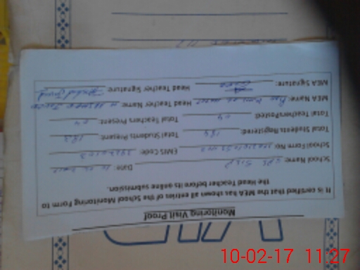 | Attendance Register | Head Teacher | MEA with School | Visit Proof |