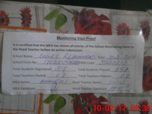 | Certified that this School was Inspected by the Undersigned MEA/DMO Today and the Information Stated Above is as Per Record. | |||||