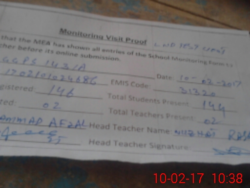 | EMIS Code: 31320581 | Name of School: GGPS CHAK NO.143/A | |||
