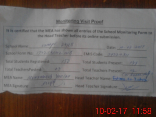 | Certified that this School was Inspected by the Undersigned MEA/DMO Today and the Information Stated Above is as Per Record. | |||||