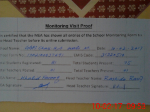 | Certified that this School was Inspected by the Undersigned MEA/DMO Today and the Information Stated Above is as Per Record. | |||||
