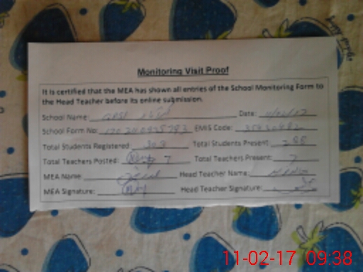 | Attendance Register | Head Teacher | MEA with School | Visit Proof |