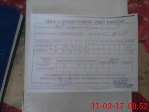 | Attendance Register | Head Teacher | MEA with School | Visit Proof |