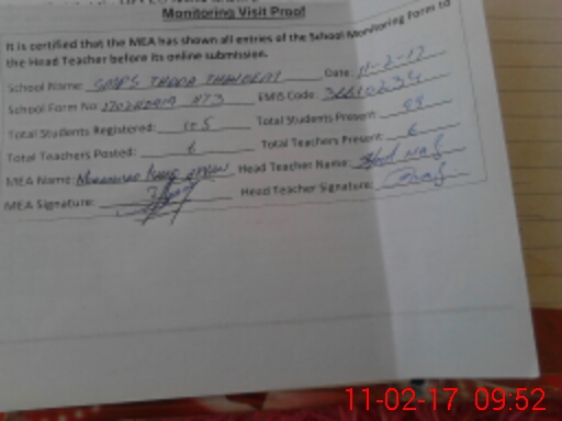 | Certified that this School was Inspected by the Undersigned MEA/DMO Today and the Information Stated Above is as Per Record. | |||||
