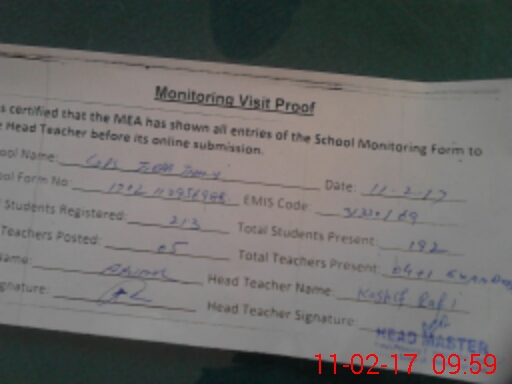 | Certified that this School was Inspected by the Undersigned MEA/DMO Today and the Information Stated Above is as Per Record. | |||||