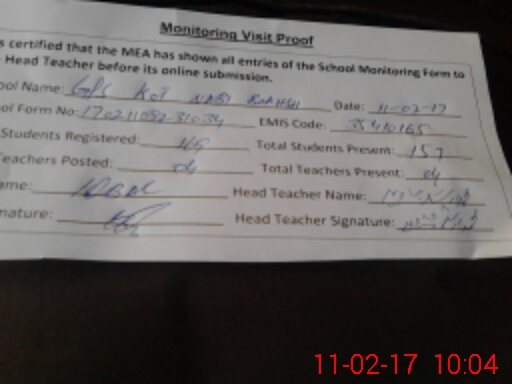 | EMIS Code: 35410165 | Name of School: GPS KOT NABI BAKHSH | |||
