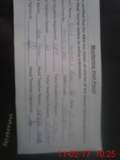 | Certified that this School was Inspected by the Undersigned MEA/DMO Today and the Information Stated Above is as Per Record. | |||||