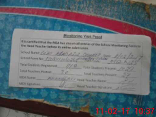 | Certified that this School was Inspected by the Undersigned MEA/DMO Today and the Information Stated Above is as Per Record. | |||||