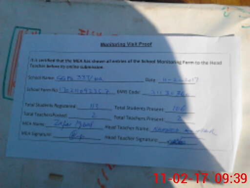 | Certified that this School was Inspected by the Undersigned MEA/DMO Today and the Information Stated Above is as Per Record. | |||||