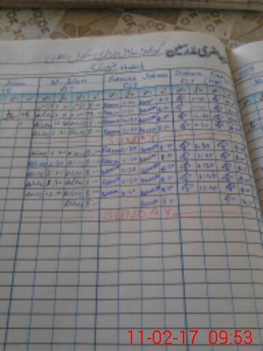 | CNIC | Full Name | Designation | R/C | Absence During Last Calender Month |