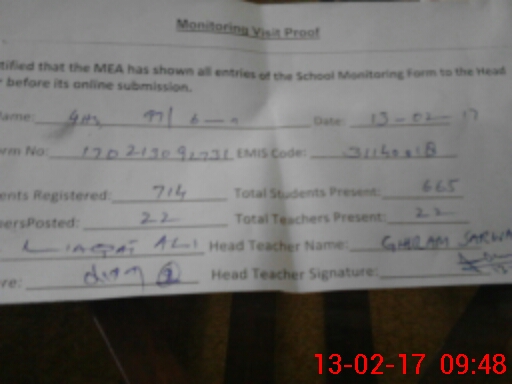 | Certified that this School was Inspected by the Undersigned MEA/DMO Today and the Information Stated Above is as Per Record. | |||||