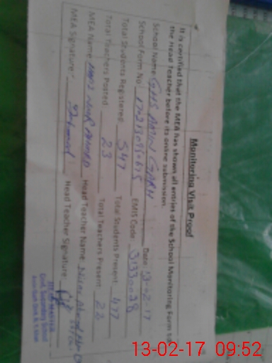 | Certified that this School was Inspected by the Undersigned MEA/DMO Today and the Information Stated Above is as Per Record. | |||||