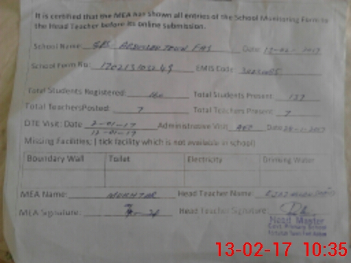 | EMIS Code: 31130085 | Name of School: GPS ADBULLAH TOWN FOR ABBAS | |||