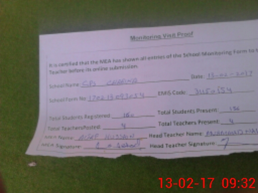 | Attendance Register | Head Teacher | MEA with School | Visit Proof |