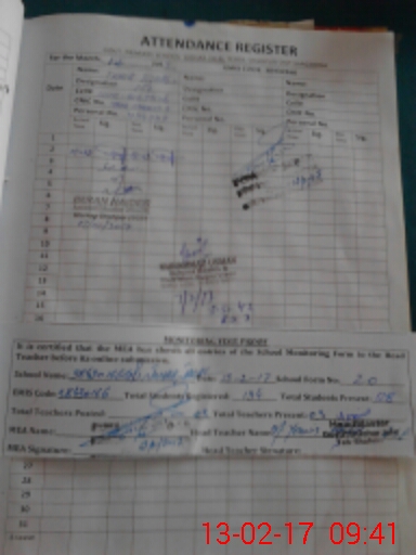 | Attendance Register | Head Teacher | MEA with School | Visit Proof |