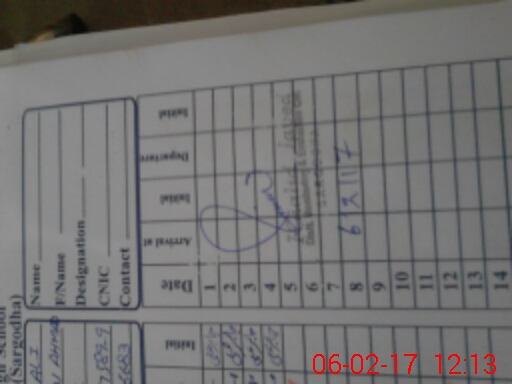 | Name: UF**** FE**** Designation: (School Headmaster's/Headmistress's) HEADMISTRESS Phone/Cell Number: 03**** |