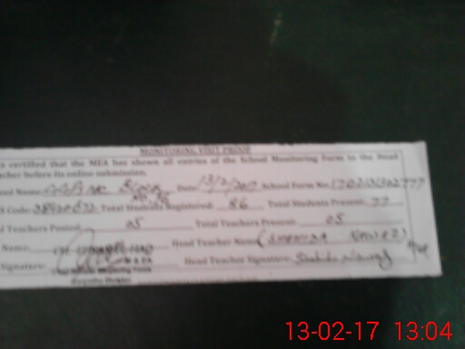 | Attendance Register | Head Teacher | MEA with School | Visit Proof |