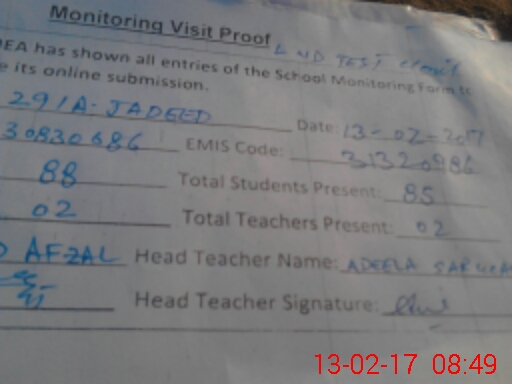 | Attendance Register | Head Teacher | MEA with School | Visit Proof |