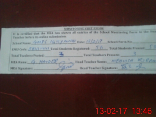 | Certified that this School was Inspected by the Undersigned MEA/DMO Today and the Information Stated Above is as Per Record. | |||||