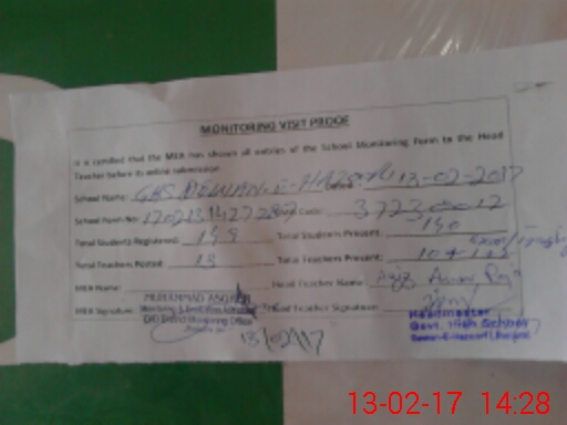 | EMIS Code: 37230012 | Name of School: GHS DEWAN HAZOORI (BISHANDAUR) | |||