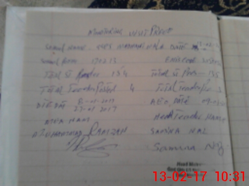 | School Visited by School Health & Nutrition Supervisor (No. of Visits) | Name1: | HAFIZ M AKBAR | Name2: | ||