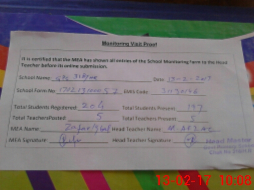 | EMIS Code: 31130146 | Name of School: GPS CHAK 318/HR | |||